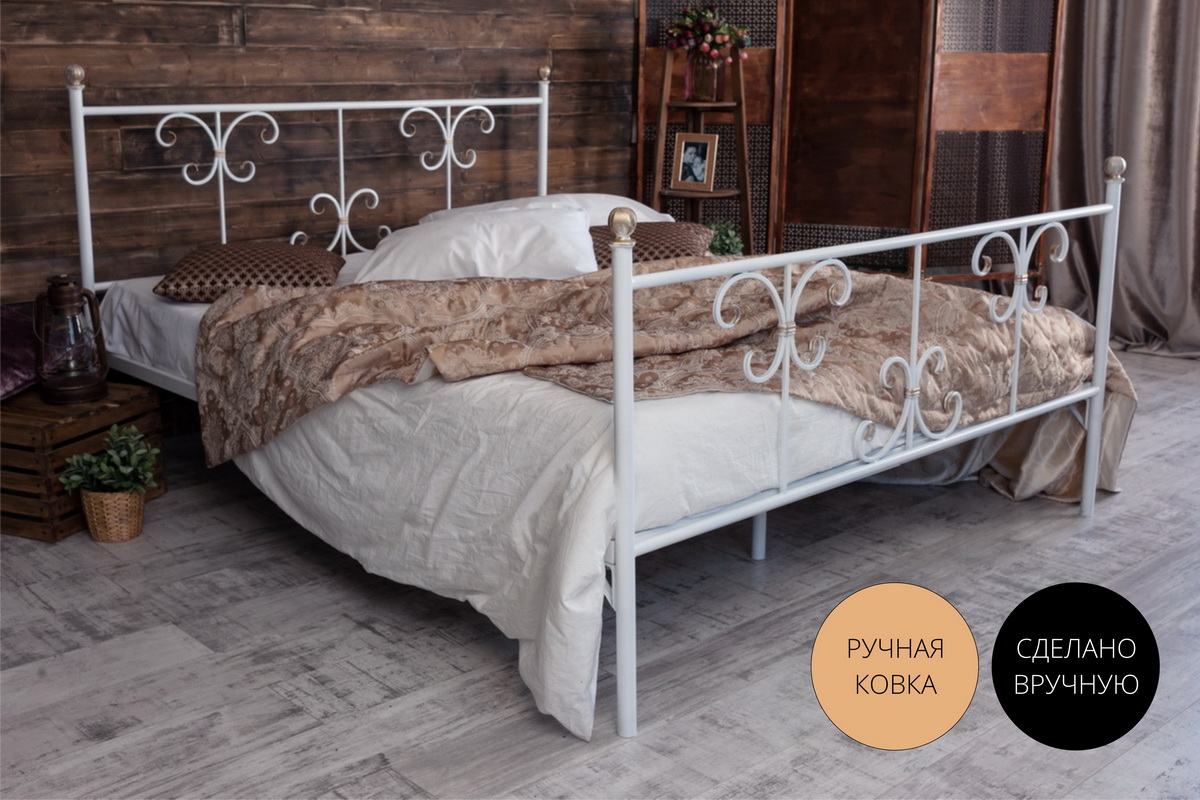 Кованая кровать Симона 1.8 с двумя спинками (Белый)