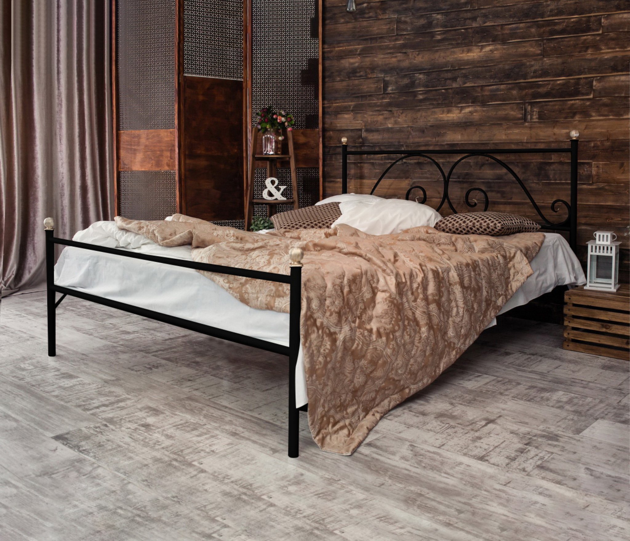 Кованая кровать Анталия 1.6 с одной спинкой (Черный)