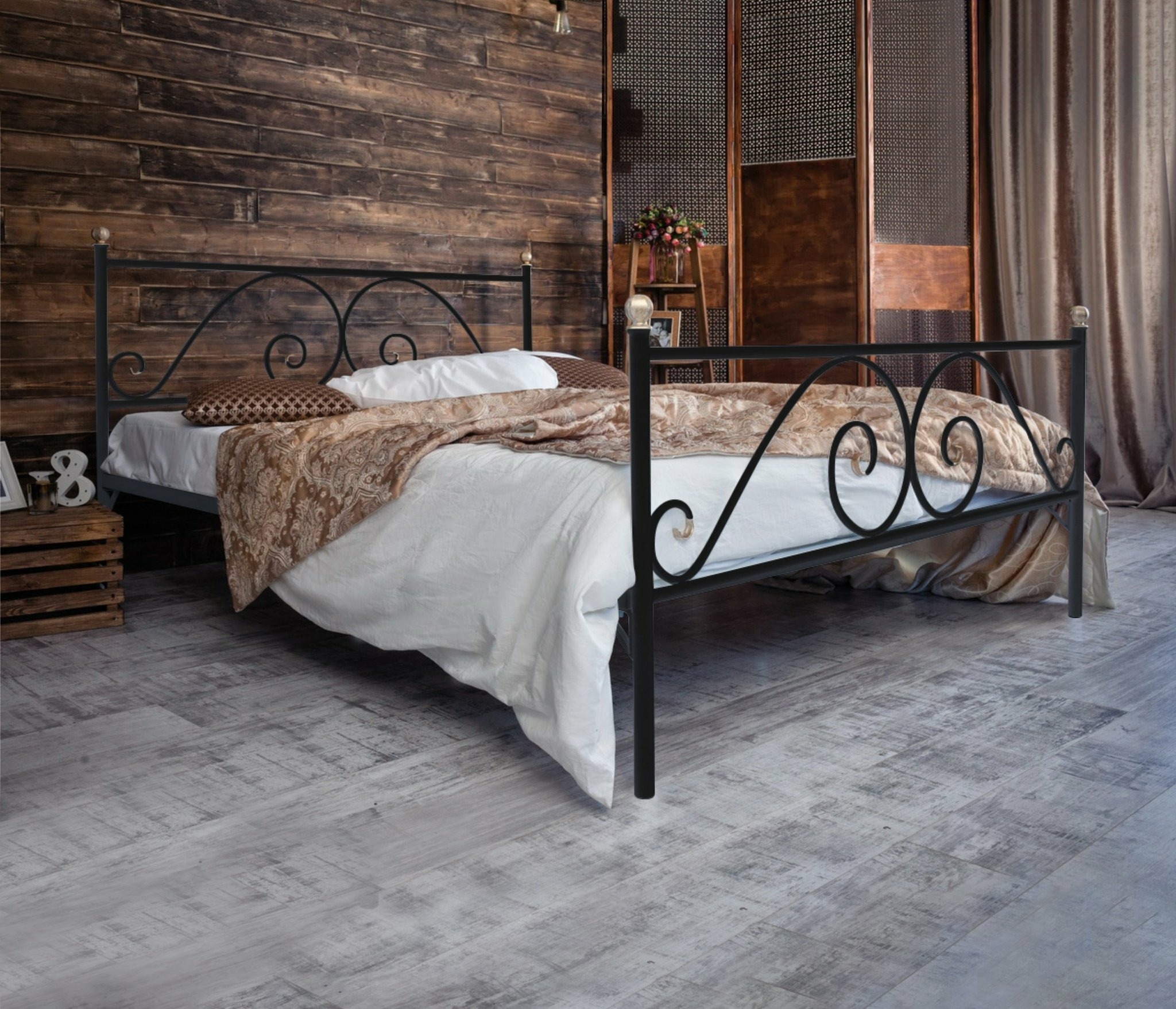 Кованая кровать Анталия - стильная, изысканная модель с облегченной конструкцией, в которой надежность и изящество ручной ковки сочетаются с качественными и проверенными временем материалами производства.