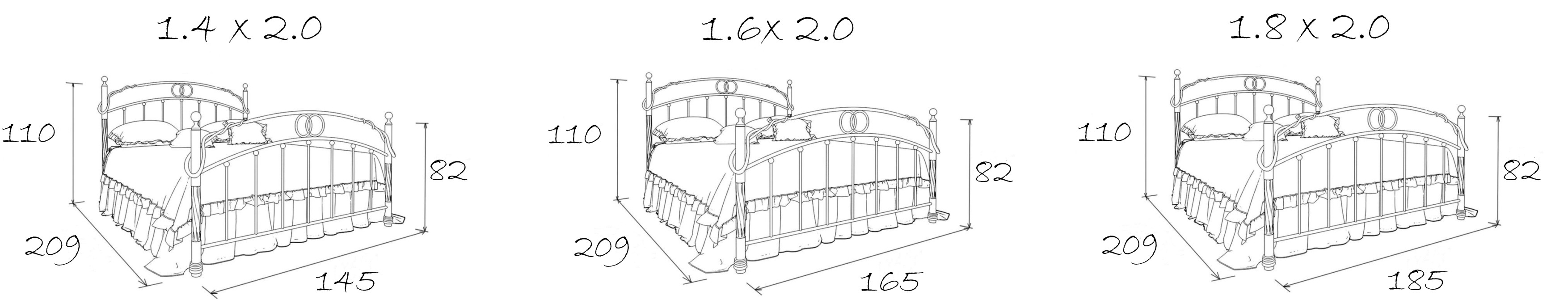 Размеры спального места (ДхШ) 2000х1400, высота изножья 820, мммаксимальная нагрузка на 1 спальное место - 150 кг.