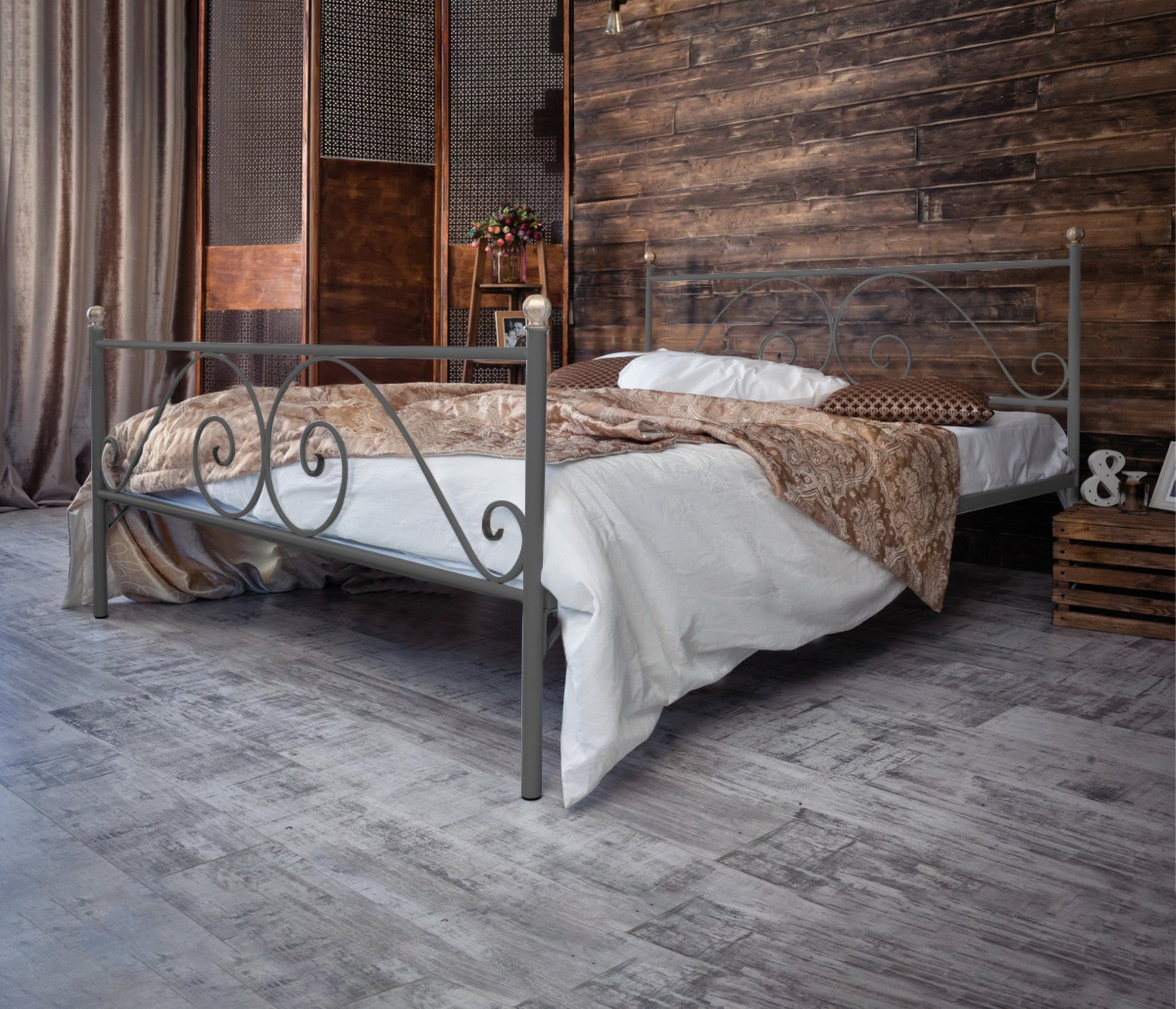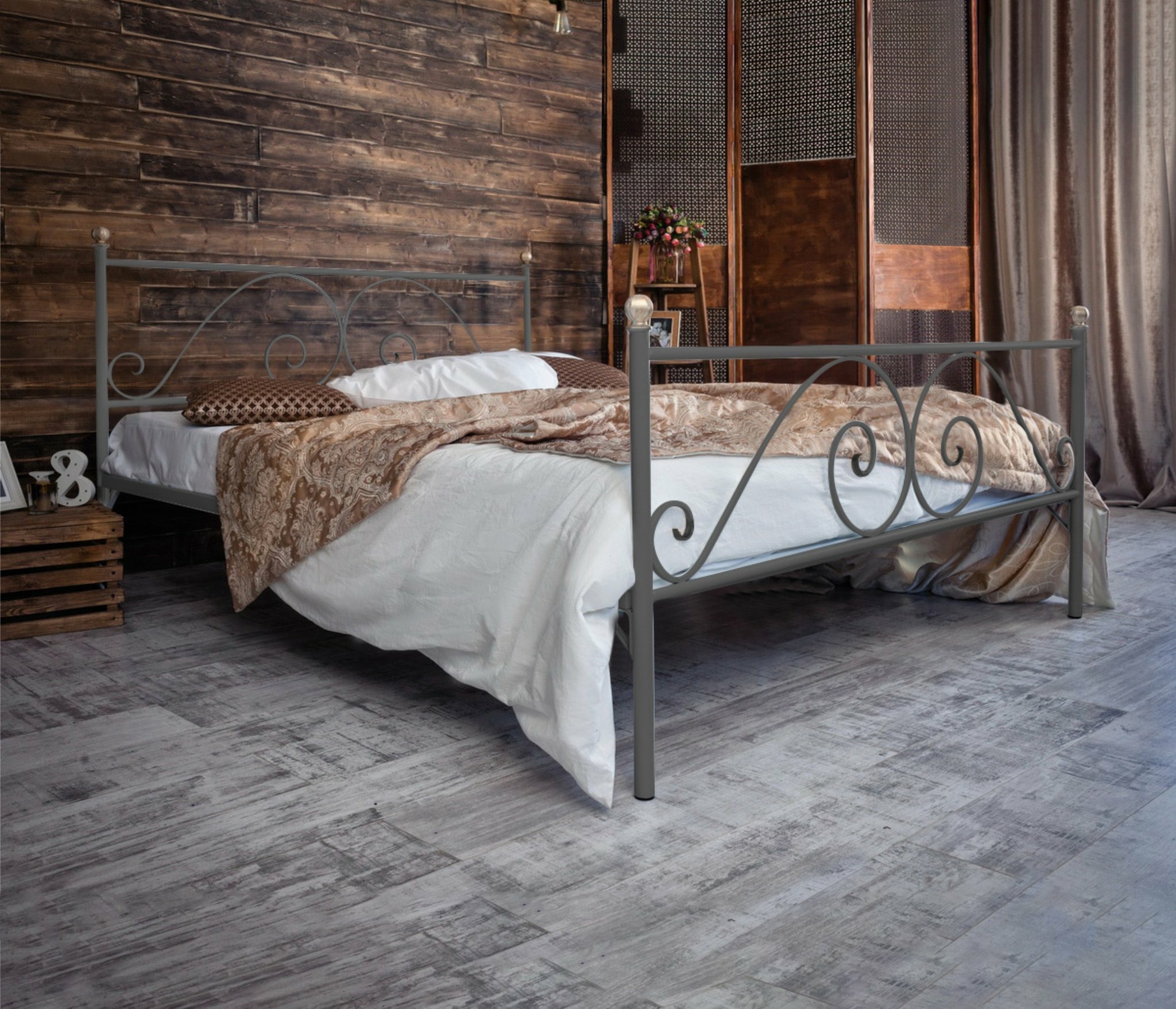 Кованая кровать Анталия 1.8 с двумя спинками (Серый)