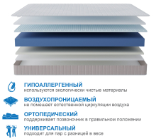 Классический, двусторонний, беспружинный матрас на основе монолитного блока искусственной пены и ячеистого вязкоэластичного поролона. Ячеистый вязкоэластичный поролон (материал с «ячейками памяти») — это продукт высоких технологий, самый эластичный и прочный из всех материалов класса «люкс», призванный обеспечить максимальный комфорт и здоровый сон. Данный уникальный материал с вырезанным в виде ячеек верхним рельефным слоем изготовлен на основе вспененного полиуретана поддерживает естественную циркуляцию воздуха внутри матраса, гипоаллергенный, препятствует образованию бактерий, выдерживает большие нагрузки, отлично поддерживает позвоночник, быстро реагирует на тепло, не впитывает влагу, обладает эластичностью, упругостью и микромассажным эффектом. Микромассаж нормализует кровообращение в мышцах, способствуя их расслаблению. Рекомендовано использование вместе с защитным чехлом Aquastop.Подходит для кроватей с подъемным механизмом.