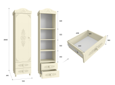 Шкаф-пенал с двумя выдвижными ящиками. Высота боковых стенок каждого ящика 130 мм, ширина ящика 408 мм, глубина 350 мм. Ящики установлены на телескопических направляющих полного выдвижения.