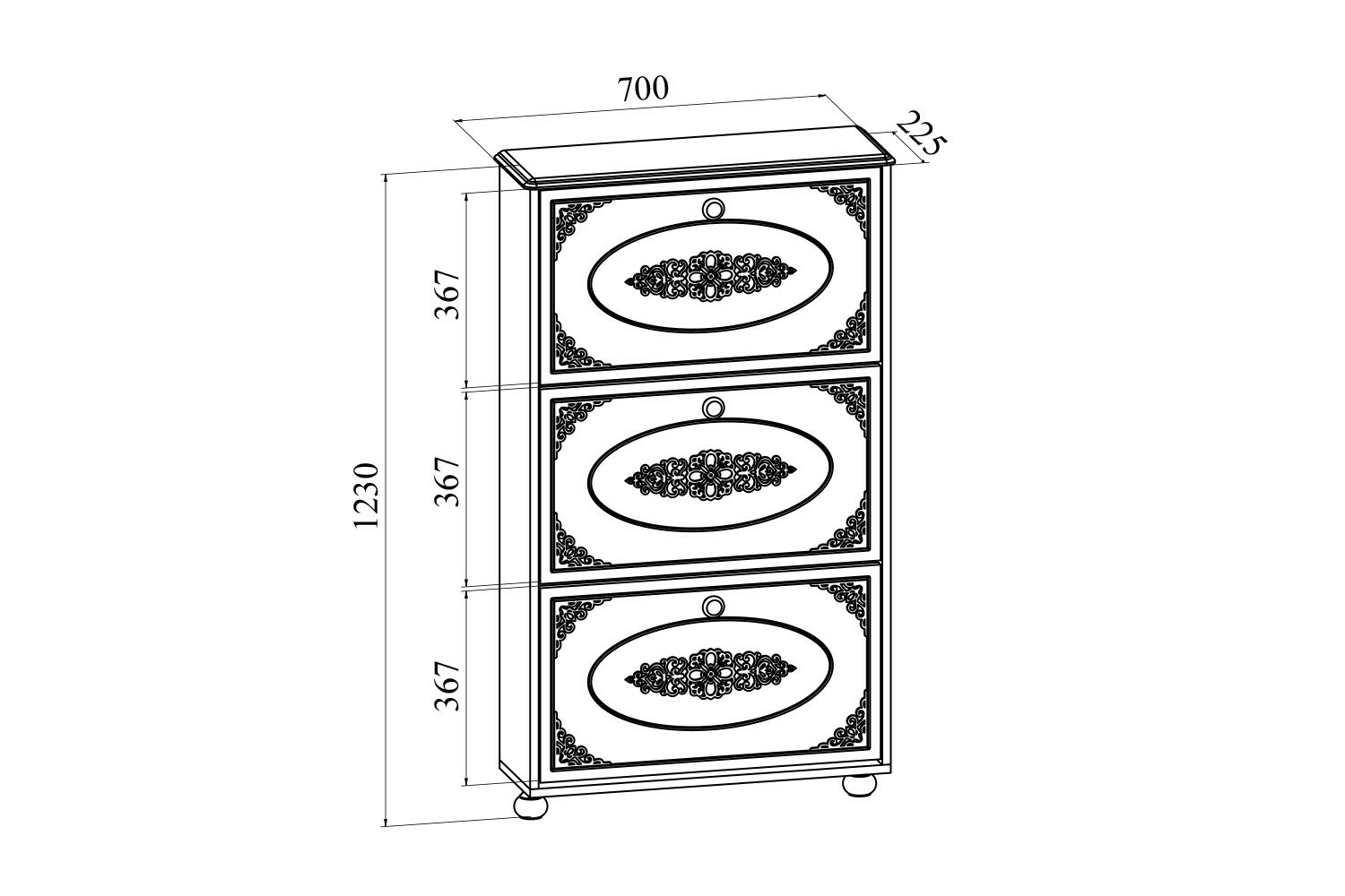 Трехсекционная вертикальная тумба для обуви. Две ножки. Крепится к стене.