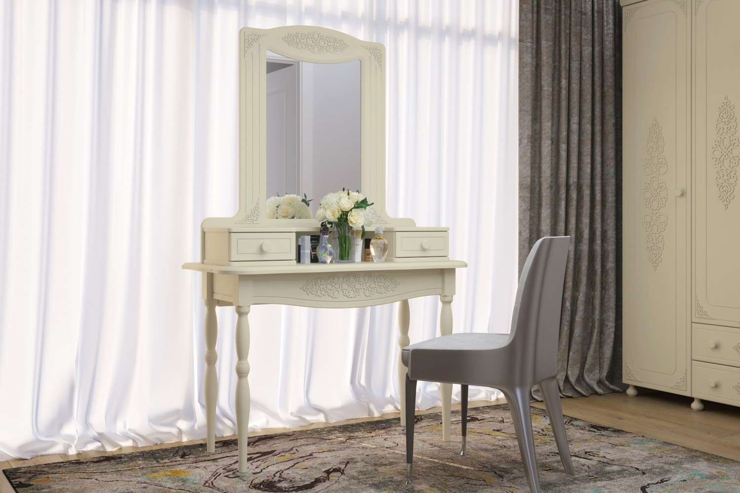 «Ассоль» - мягкий мерцающий глянец и эксклюзивный узор, повторяющийся на фасадах всех модулей идеален для создания нежного уютного интерьера спальни, гостиной, детской, прихожей.