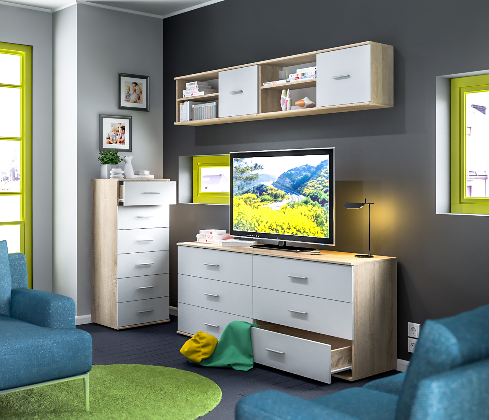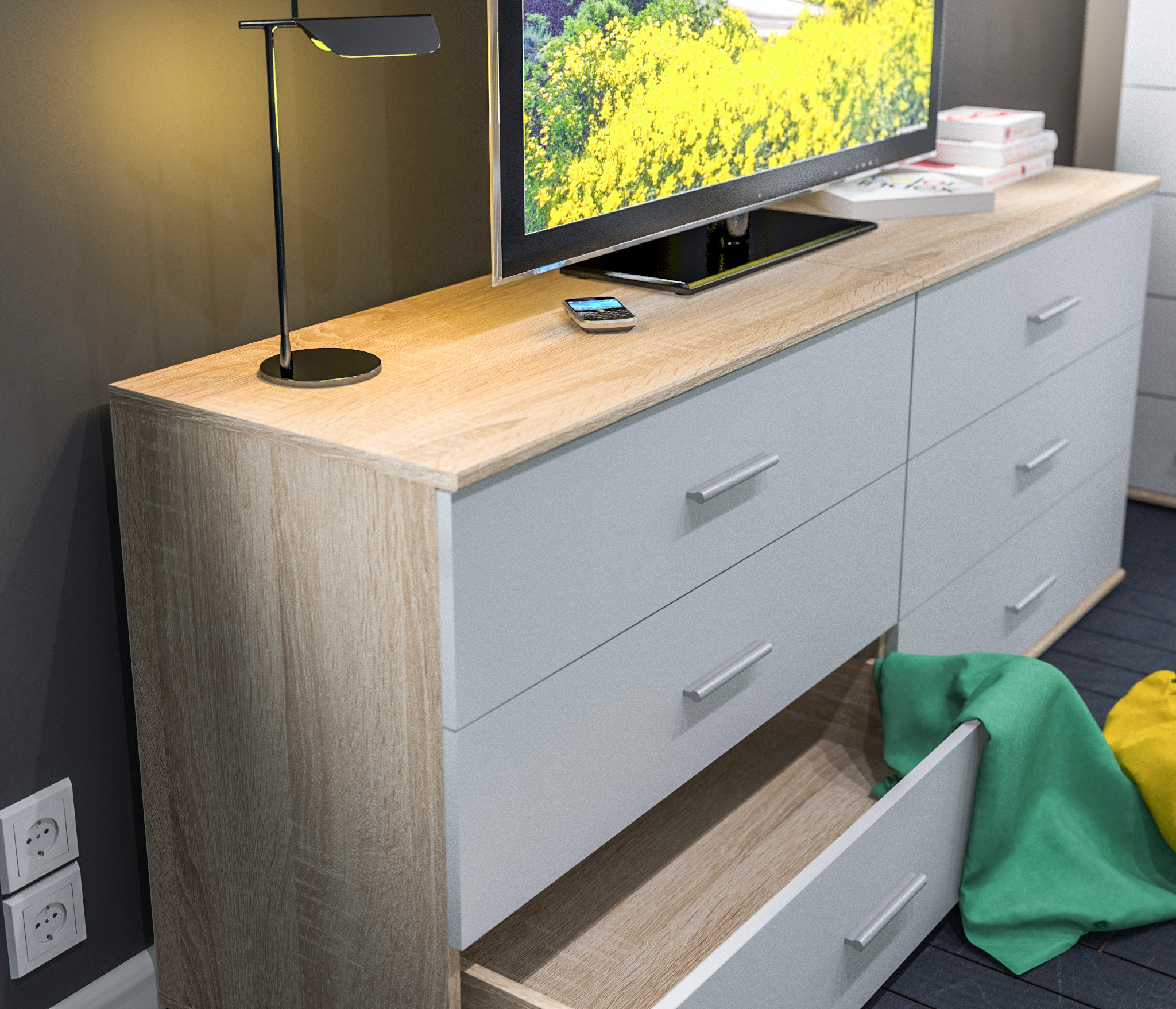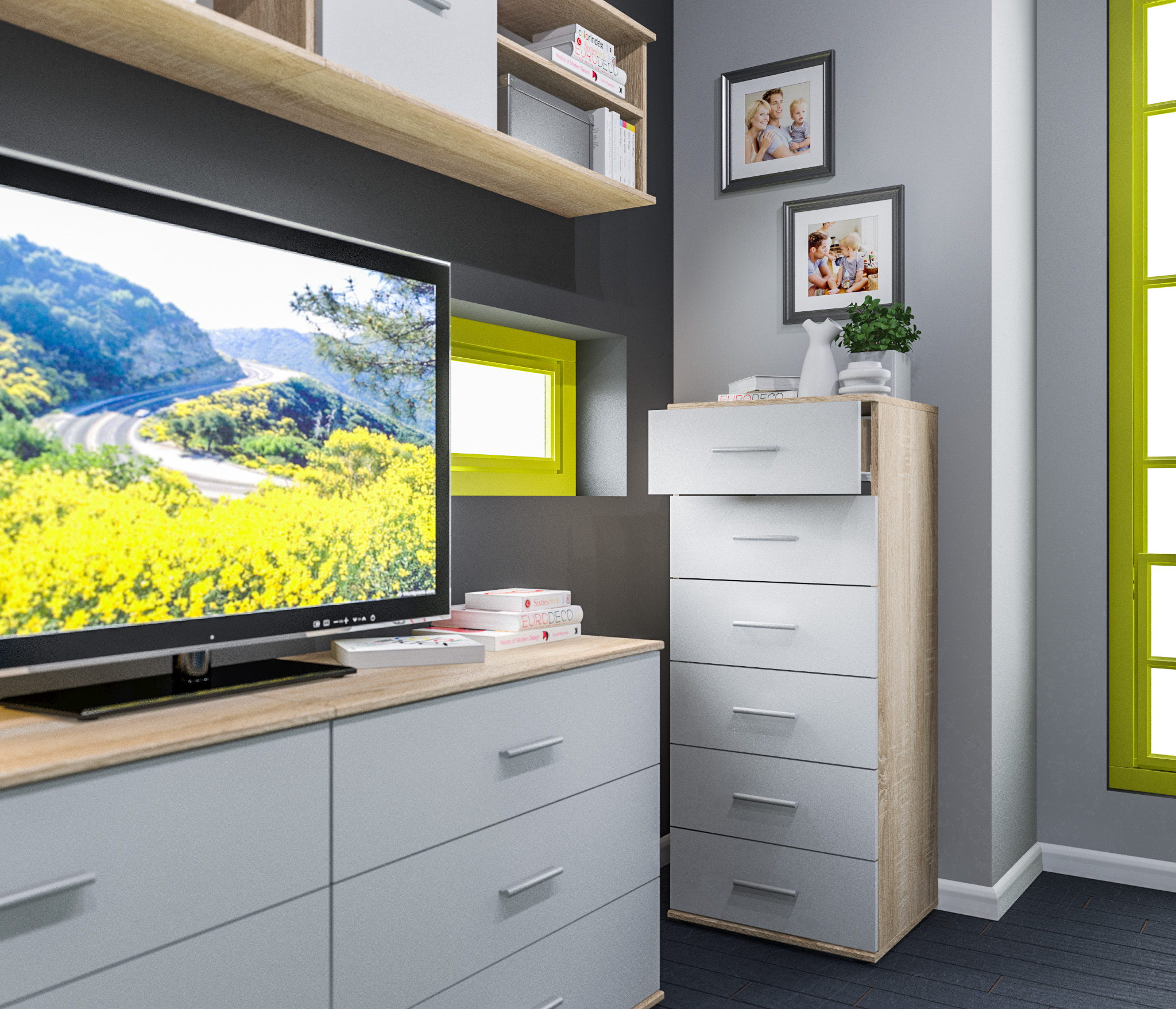 Комод Мамбо СБ-2540 (Дуб Сонома/Белый)