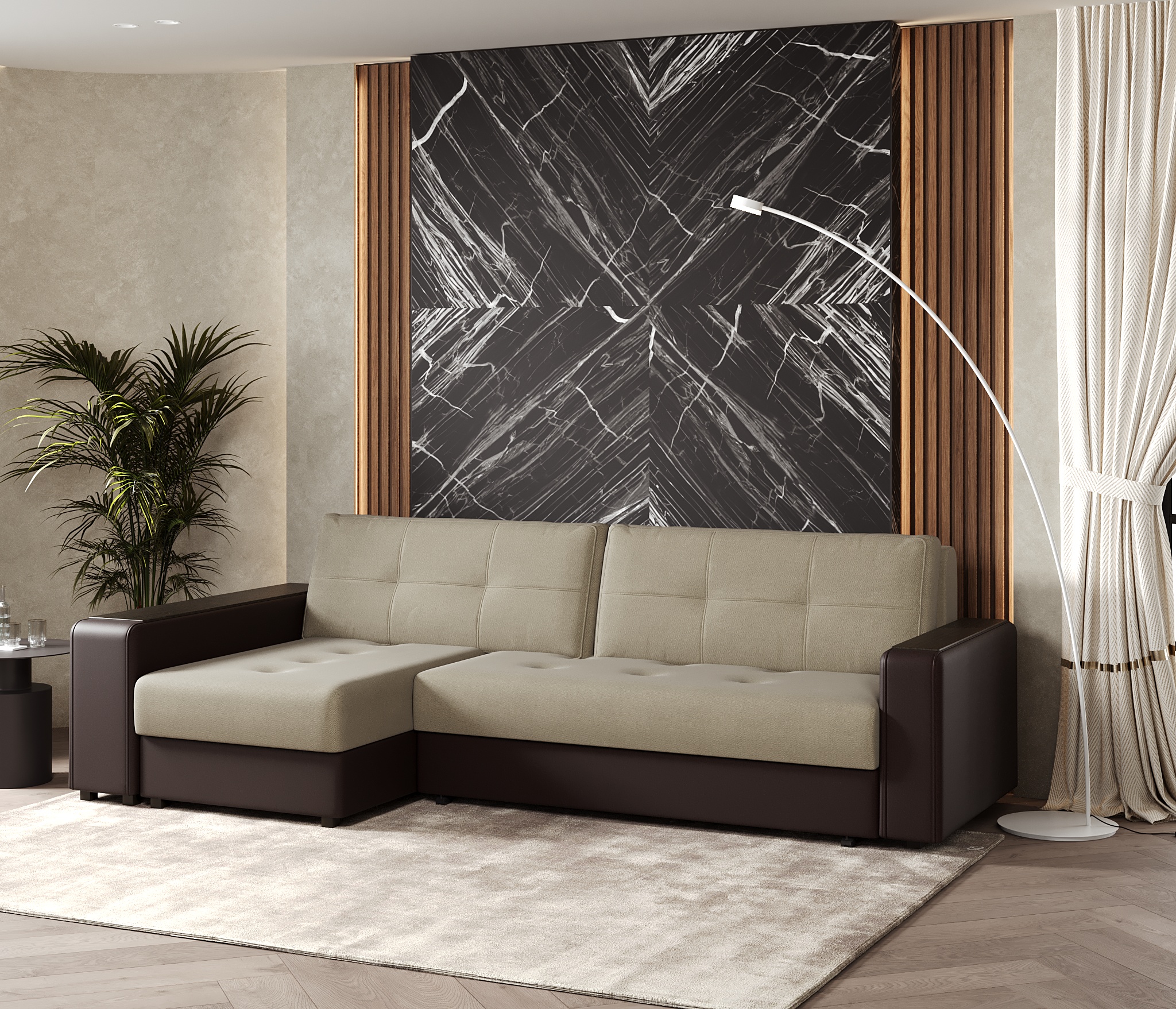 Угловой диван Атланта это идеальный способ грамотно организовать пространство в вашей квартире. Диван может быть и левосторонним, и правосторонним, поэтому вы легко сможете его разместить в любой комнате.