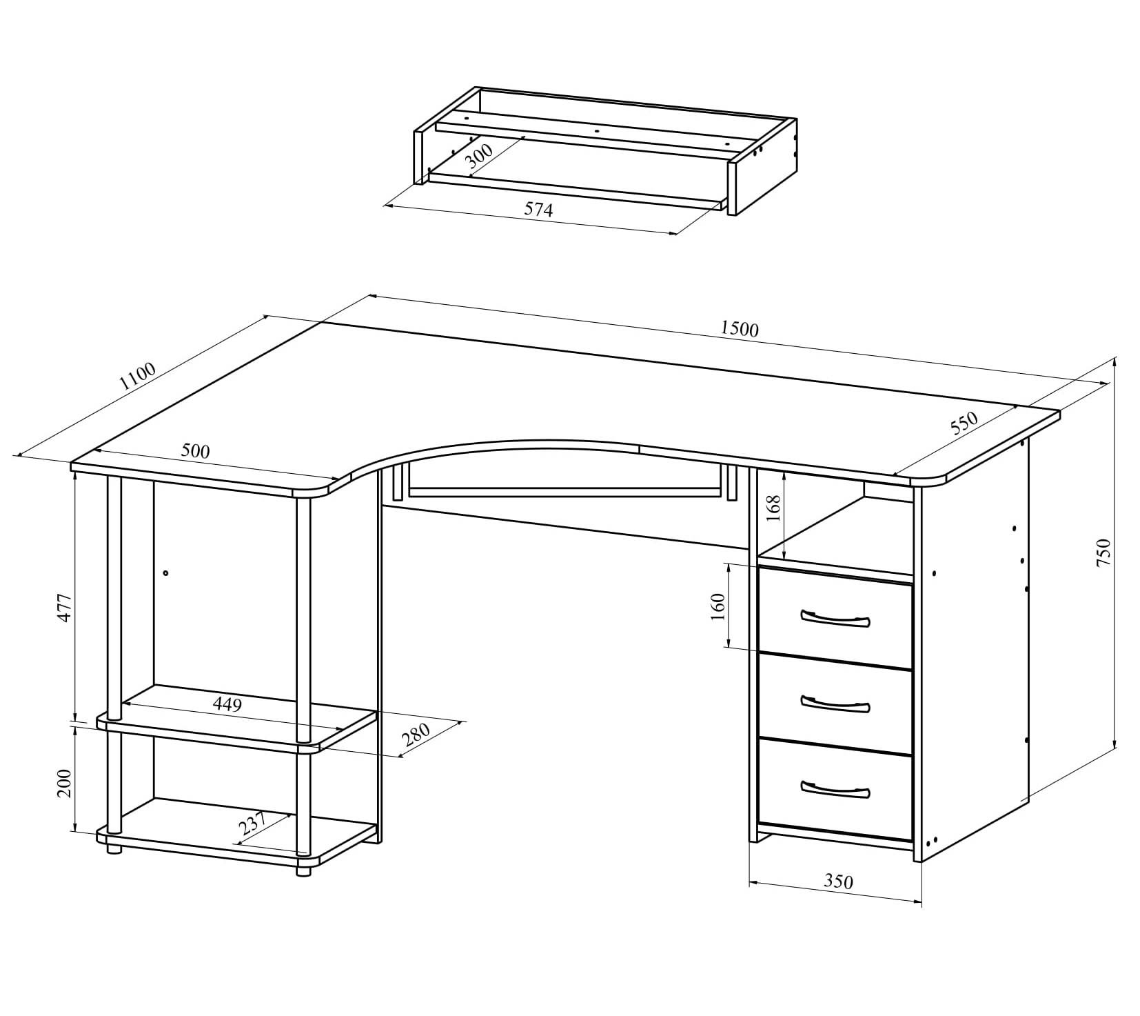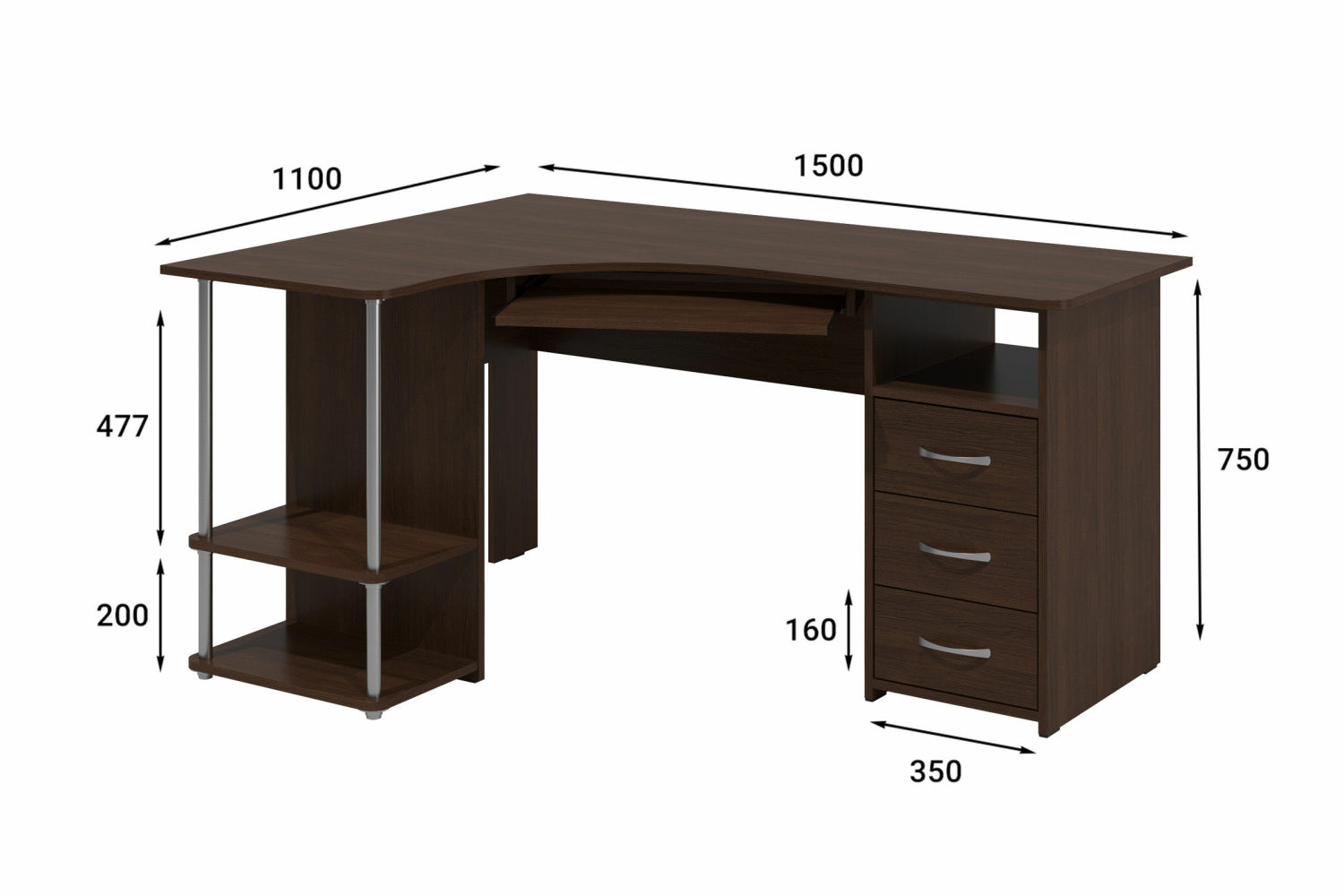 Материал корпуса/фасада: ЛДСП 16 мм. Размеры модуля (ш/г/в) в мм: 1500х1100х750.