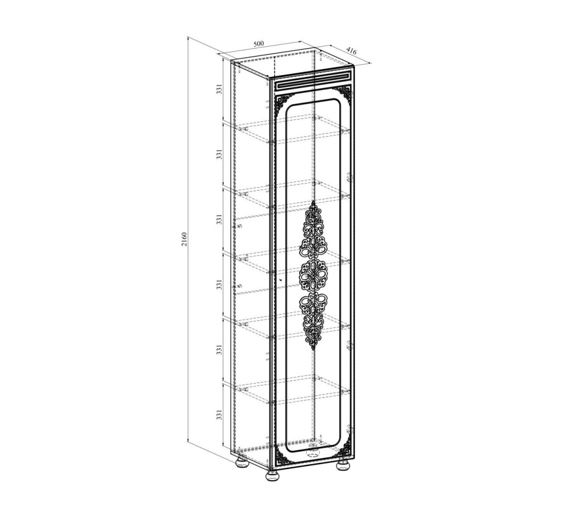 Материал корпуса/фасада: ЛДСП/МДФ с 3-D узором. Цвет корпуса/фасада: ваниль/ваниль. Размеры модуля (ш/г/в) в мм: 500х416х2160. Фурнитура: петли с доводчиками. Высота опоры 65 мм.