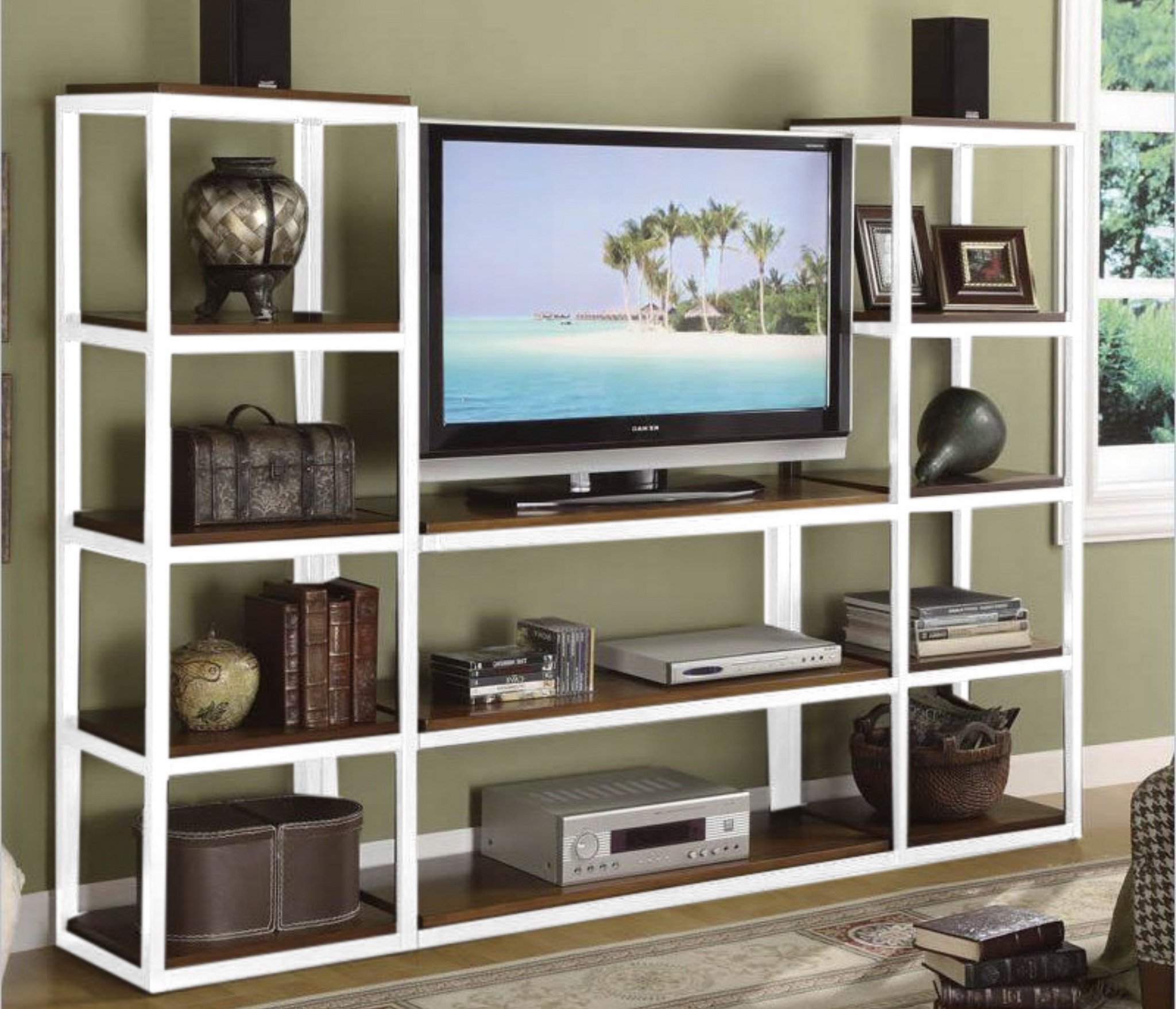 С ТВ тумбой , со стеллажом, глянцевые фасады, С полками