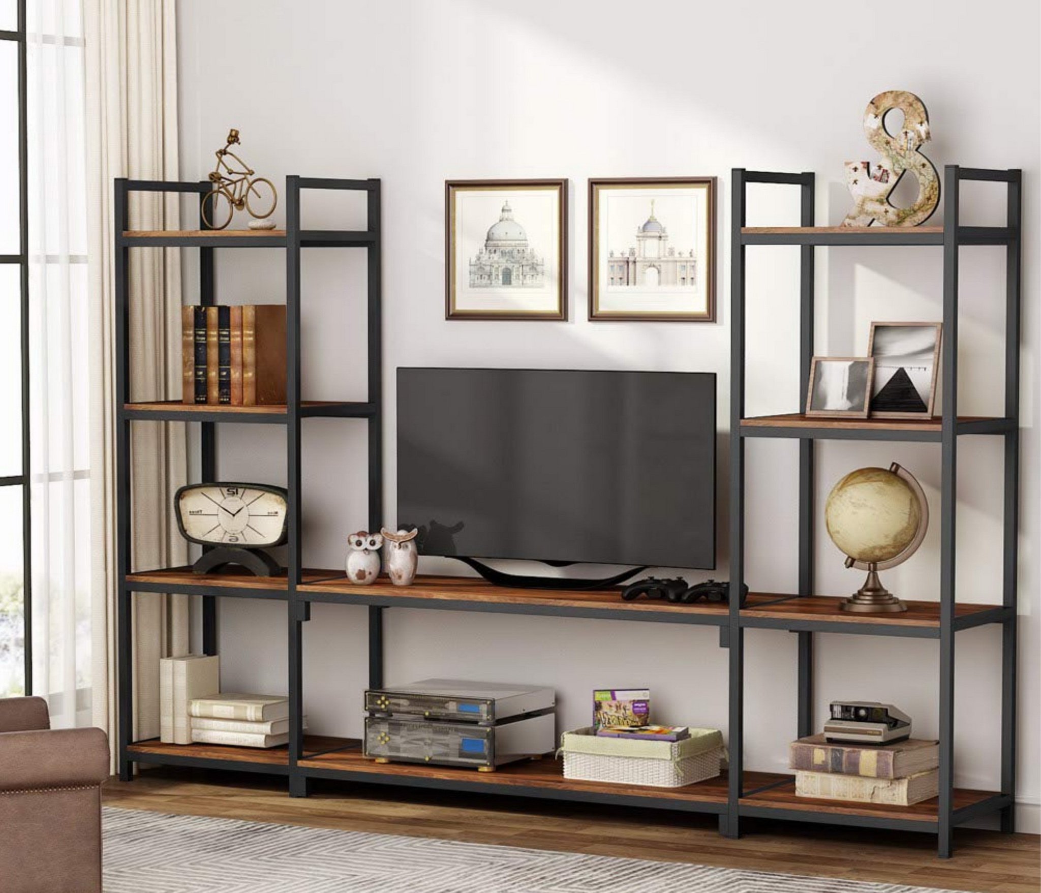 глянцевые фасады, С полками, С ТВ тумбой , со стеллажом