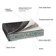 Основа – влагостойкое ДСП, толщиной 38 мм. Пластик толщиной 04-0,5 мм. Задний срез обработан меламиновой кромкой. Низ закрыт защитным покрытием бэкинг, которое защищает ДСП от влаги. Столешница оснащена уникальным каплесборником (специальная силиконовая накладка, монтируемая в паз на передней части столешницы снизу). Препятствует стеканию капель воды со столешницы на фасады и встроенную техник, расположен под углом 12,7 гр. Произведена на полностью автоматизированном немецком оборудовании. Поставляется в упаковке.