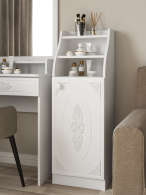 Стеллаж Ассоль АС-64, исполненный в стиле Прованс, прекрасно подойдет для вашей квартиры или загородного дома. Выполненный из качественных материалов, этот стеллаж порадует Вас своей практичностью и долговечностью. Особый шарм изделию придает уникальный фасад с изящным объемным узором. Стеллаж Ассоль АС-64 имеет две открытых верхних ниши и закрытые распашной дверцей полки внизу. Модуль может быть собран с дверцей, открывающейся как на правую, так и на левую сторону. Для этого необходимо по часовой стрелке развернуть фасад изделия на 180 градусов. Дверца крепится на петли с доводчиками. Изделие поставляется в разобранном виде, в фабричной упаковке, с инструкцией по сборке и полным комплектом фурнитуры.