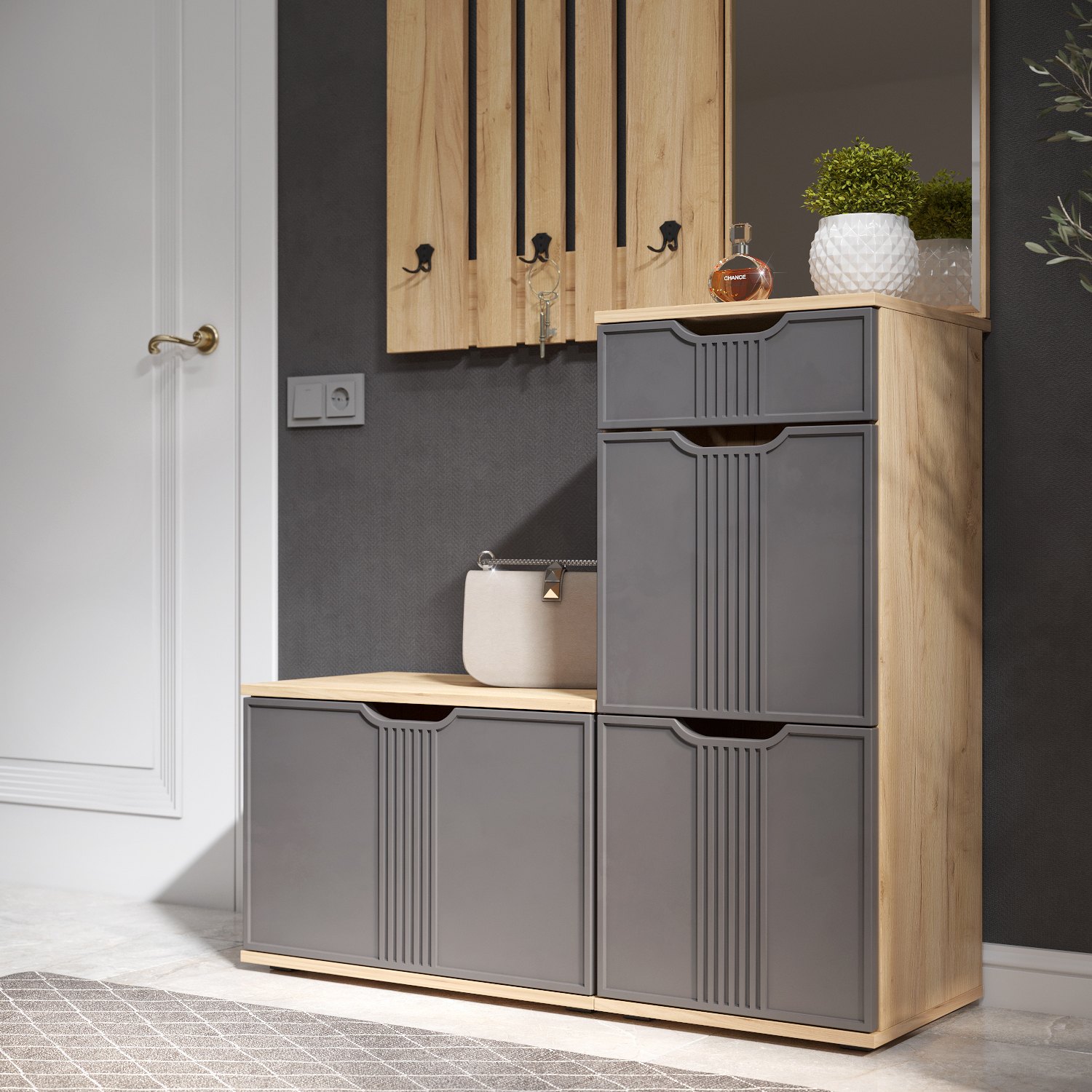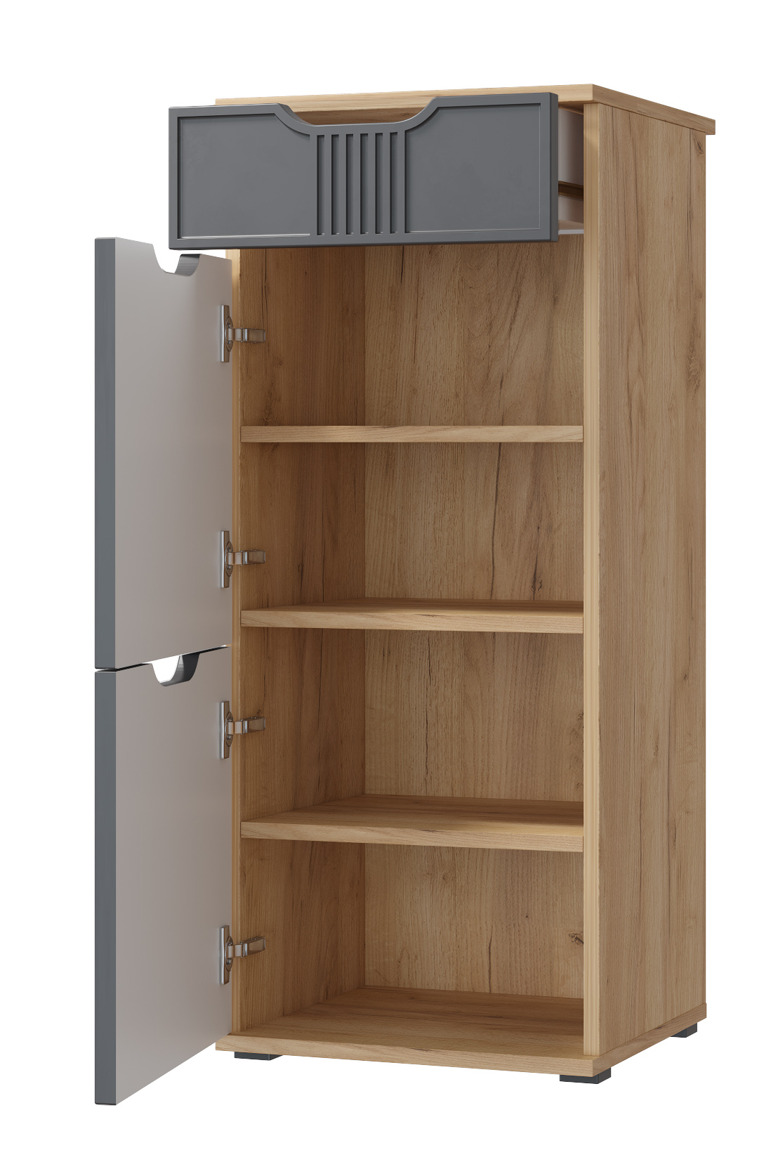 Тумба Эмилия ЭЛ-3 изготовлена из ЛДСП 16 мм, фасады МДФ. Тумба оснащена одним выдвижным ящиком, за дверьми расположены три полки для размещения обуви и других вещей. Сочетая тумбу с другими модулями из коллекции Эмилия, Вы можете создать стильную и лаконичную прихожую у себя дома. Фурнитура: телескопические направляющие полного выдвижения, петли с доводчиками.