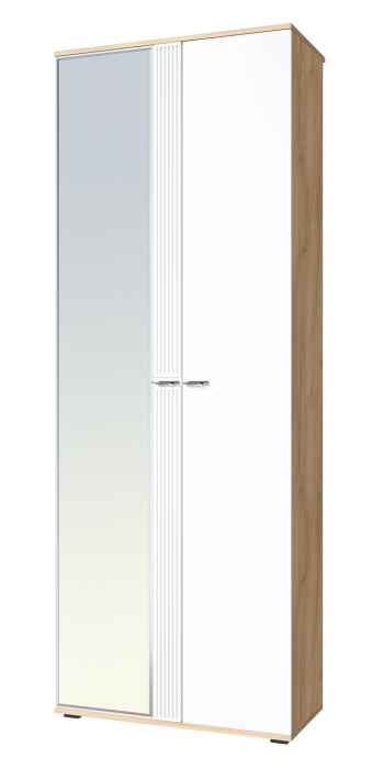 Шкаф для одежды Эмилия ЭЛ-13К комбинированный станет замечательным дополнением для обустройства комфортной и функциональной комнаты. За распашными дверьми находится выдвижная штанга для вешалок-плечиков. Полки предназначены для хранения сложенной одежды, белья, различных аксессуаров и коробок с обувью. Двери шкафа могут комплектоваться зеркалами. Свес крышки в 30 мм обеспечит прилегание к стене с любым плинтусом. Фурнитура: петли с доводчиками, ручки металл. Важная информация. Мебель доставляется в разобранном виде, в упаковках. Рекомендован монтаж к стене.