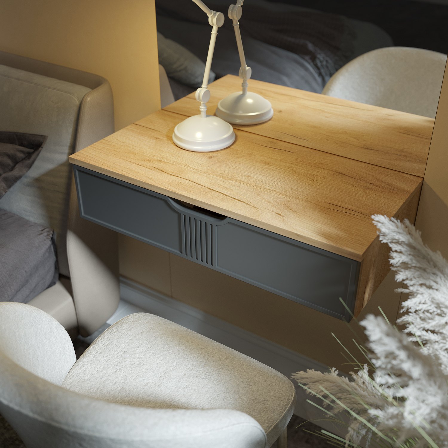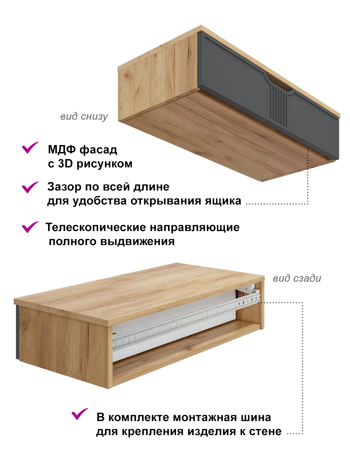Тумба подвесная/консольный столик Эмилия ЭЛ-22 с выдвижным ящиком идеально впишется в любой интерьер. Изящный дизайн, функциональность и компактность, а так же его крепление на стену позволяют создать интересное дизайнерское решение и интерьер не будет выглядеть громоздко. Отсутствие лишних деталей делает консоль легкой и практичной не загромождает пространство визуально. Несмотря на компактный размер столешница позволяет разместить ноутбук, зеркало, косметичку, настольную лампу или все для учебы и творчества. Установить можно практически в любом помещении: в детской комнате, в гостиной, в прихожей, на балкон или лоджию как полка для зеркала, для ключей, для создания индивидуального интерьерного решения. Дополнив тумбу зеркалом ЭЛ-24 вы создадите прекрасный комлект. Фурнитура: телескопические направляющие полного выдвижения без доводчиков. Важная информация. Мебель доставляется в разобранном виде, в упаковках.