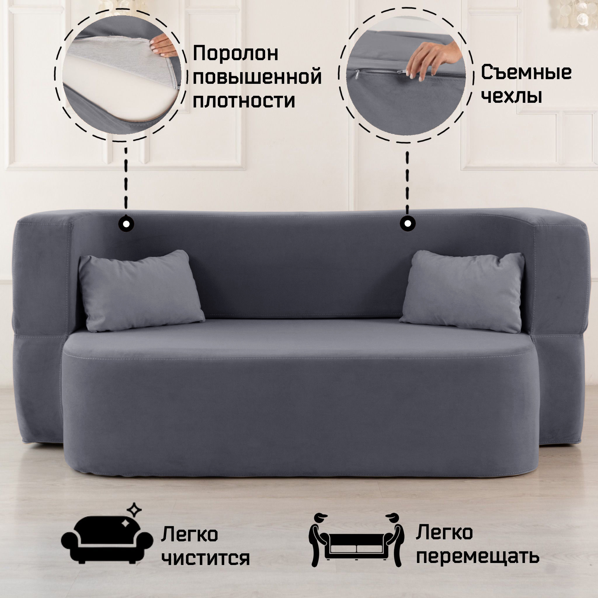 Важное преимущество «Дадли ЛАЙТ», что у него съемные чехлы, которые легко можно снять и отдать в чистку, для этого: