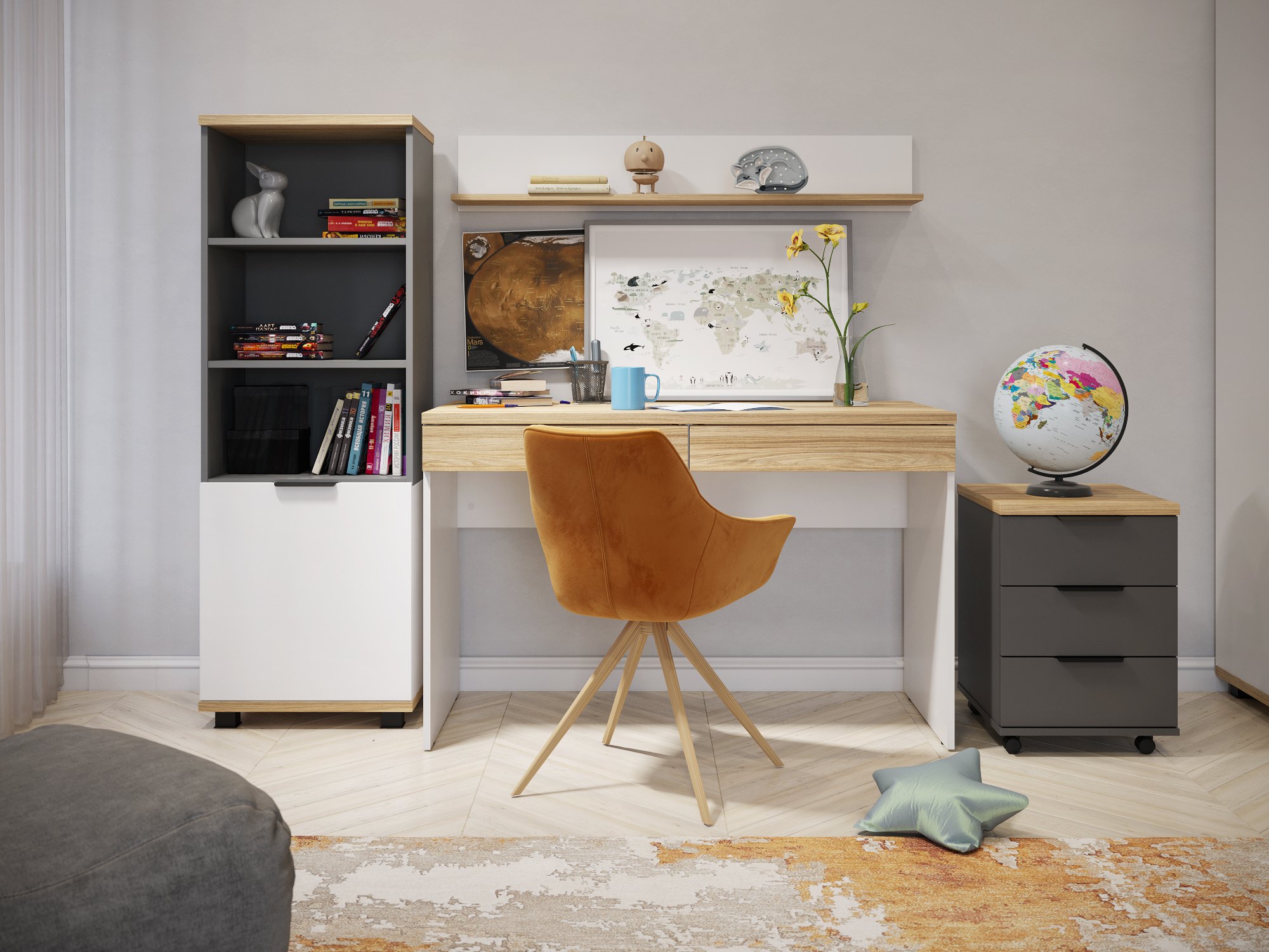 Тумба Скайлайт СЛ-12 будет гармоничным и необычайно практичным дополнением к рабочему пространсту детской или подростковой комнаты. Три вместительных выдвижных ящика пригодятся для хранения разнообразных аксессуаров, книг и канцелярии. Корпус мебели изготовлен из ЛДСП 16 мм, дно ящика двп 3 мм, толщина столешницы ЛДСП 25 мм, фасады МДФ 16 мм.