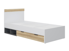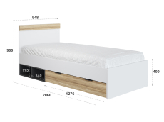 Кровать односпальная Скайлайт СЛ-32 идеальна для детской и подростковой комнаты. Кровать имеет высокое изголовье. Высота изножья 400 мм. Фасады и царги изготовлены из ЛДСП 16 мм. Кровать имеет один выкатной ящик глубиной 766 мм для хранения вещей, игрушек или постельного белья. Две дополнительных ниши в цвете серый графит могут быть использованы для хранения вещей, игрушек и книг.