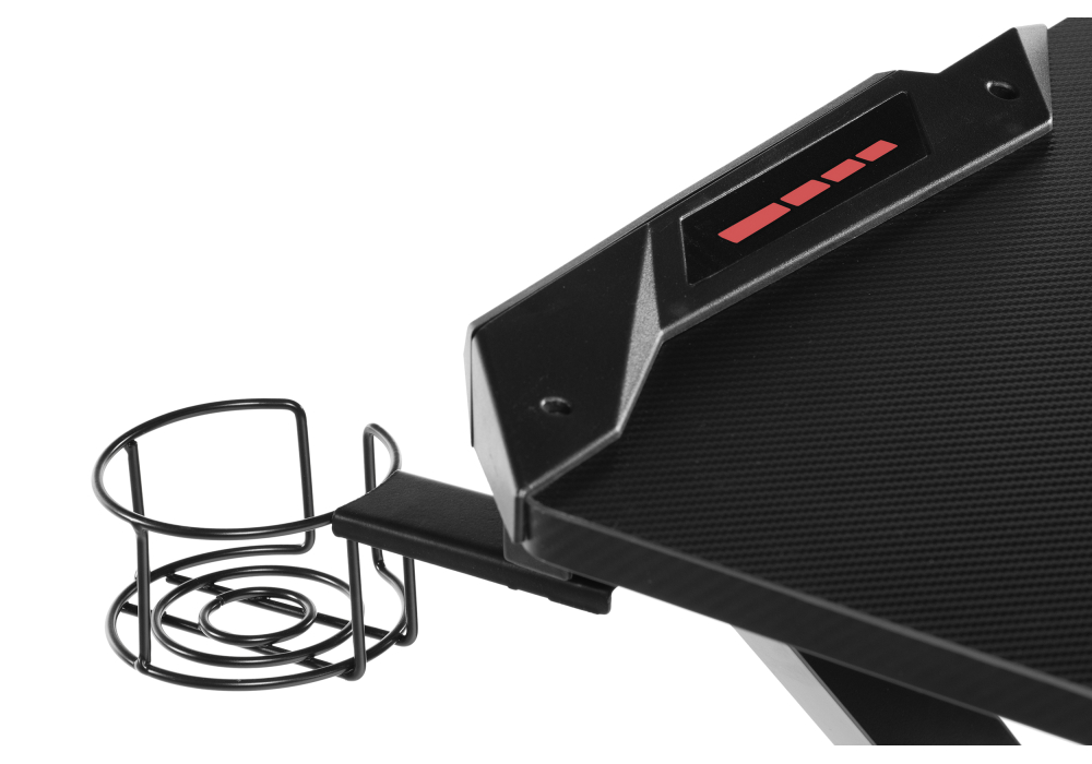 Стол оснащен подстаканником, крючком для наушников и универсальным держателем.