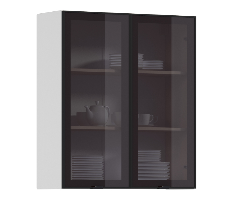 Регина РП-180 Полка Белый/Витрина алюминий Черный матовый/стекло Бронза (Черный/ Белый)