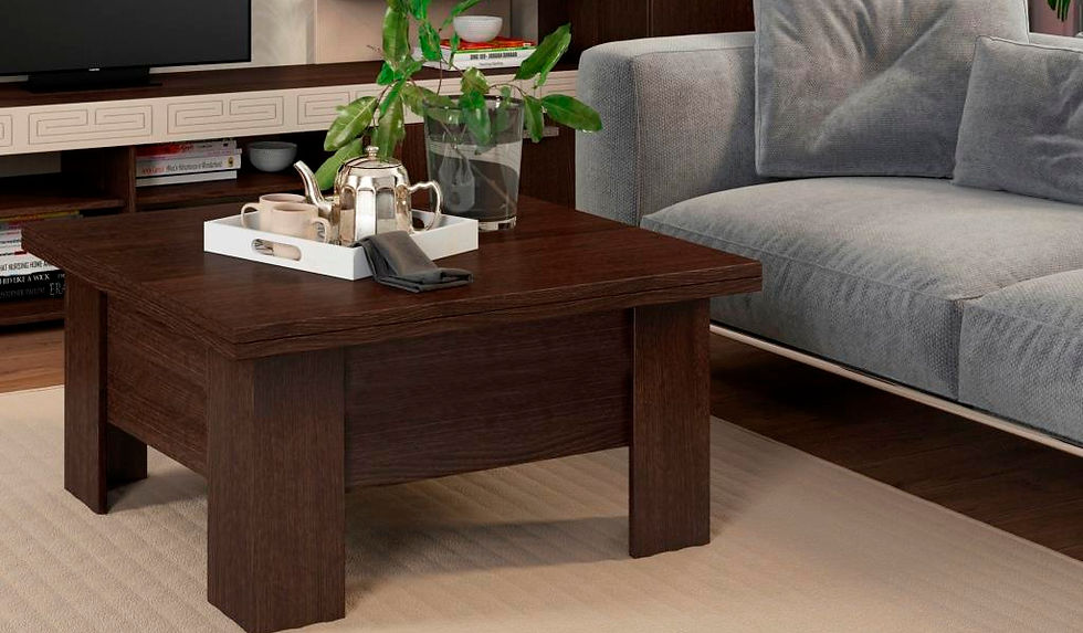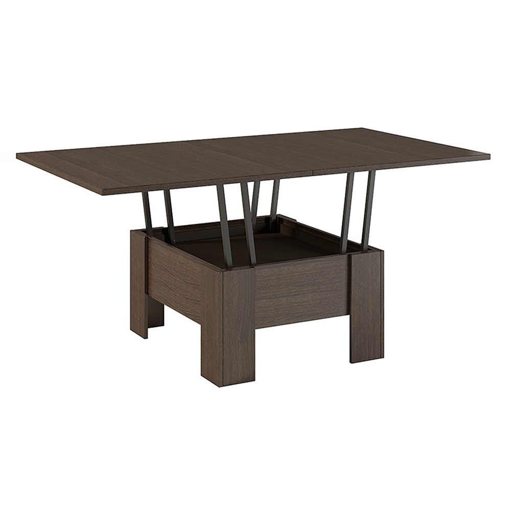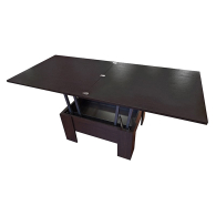 Возможность трансформации столешницы с помощью подъёмного механизма: позволяет увеличивать столешницу как в высоту, так и в длину в два раза, превращая тем самым журнальный стол в обеденный.