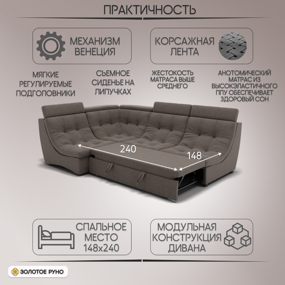 Отзывы о Столплит Угловой Диван Монако-3 ППУ, велюр Коричнево-серый