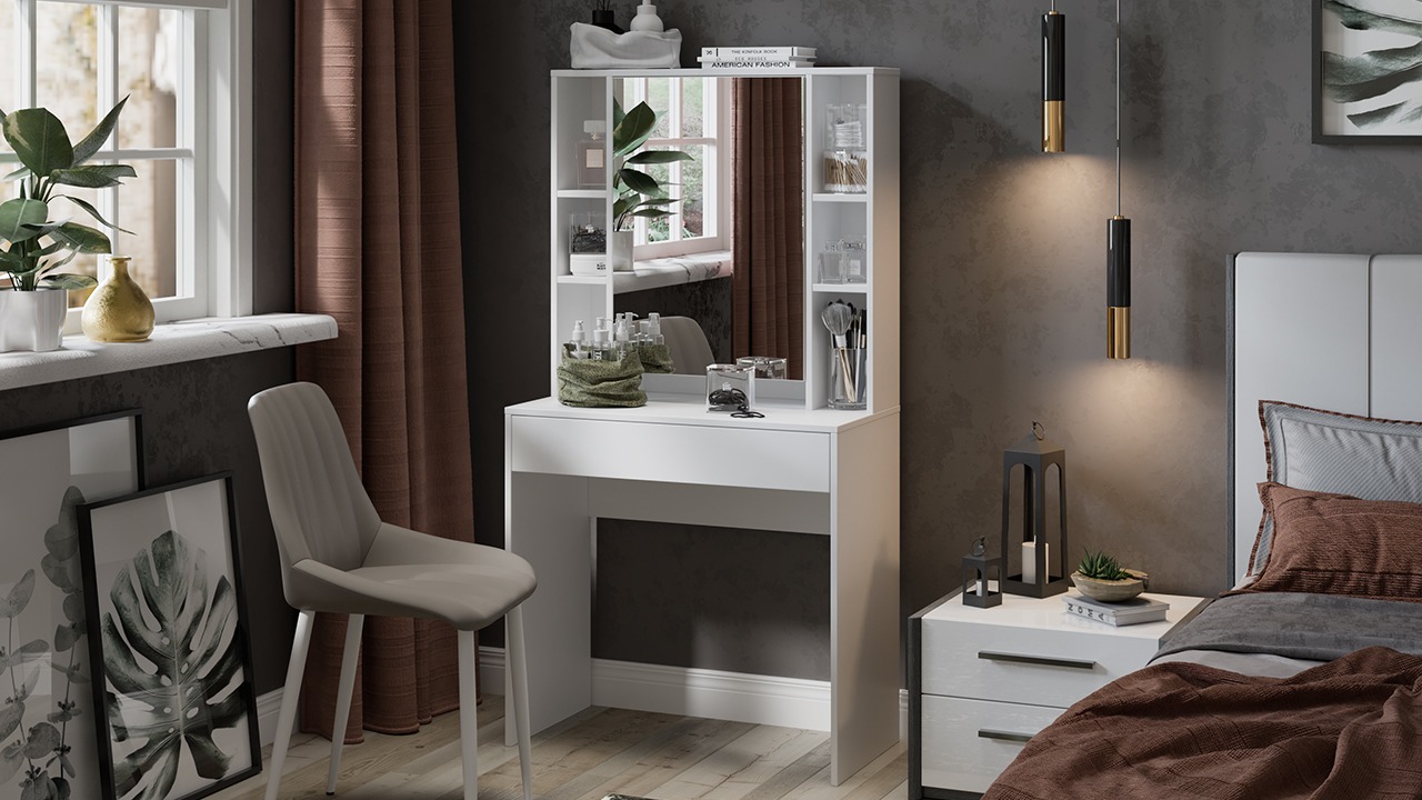 Туалетный стол Салли станет модным украшением интерьера и практичным элементом в Вашей квартире. Такое изделие прекрасно подходит для того, чтобы дополнить свой уголок в доме.