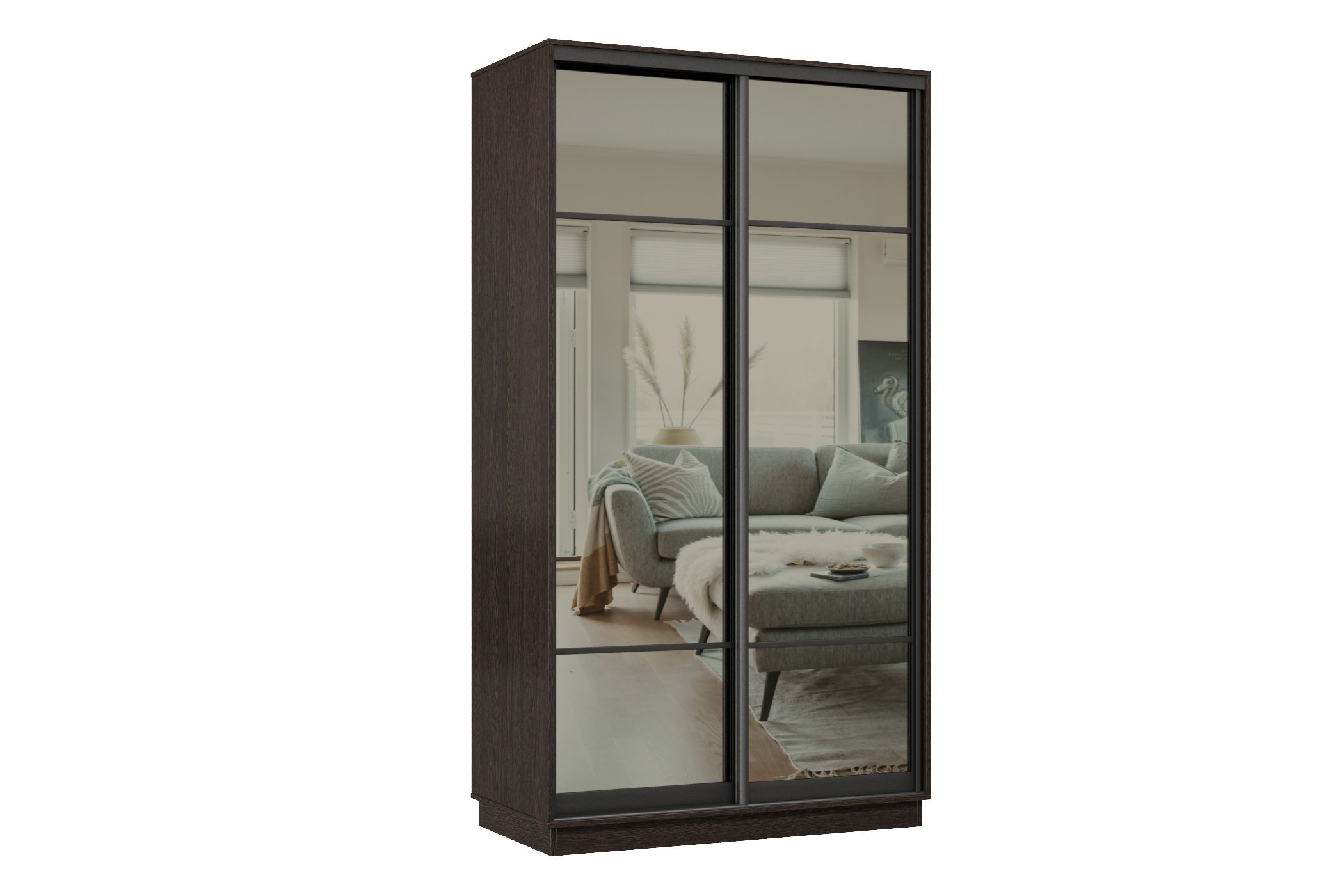 Отзывы о Столплит Шкаф-купе Премьер МИНИ 03 (11ЗГ;11ЗГ) фасады зеркало графит/двухдверный/Профиль чёрный муар Венге