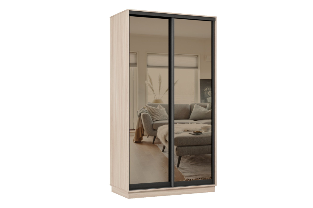 Отзывы о Столплит Шкаф-купе Премьер 02 (01ЗБ;01ЗБ) фасады зеркало бронза/двухдверный/Профиль чёрный муар Ясень шимо светлый