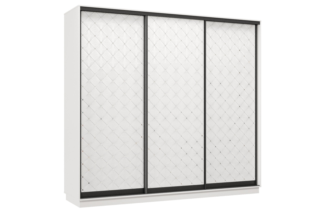 Шкаф-купе Премьер 33 (01РБ;01РБ;01РБ) фасады ромб белый/трёхдверный/Профиль чёрный муар Код I0000374329