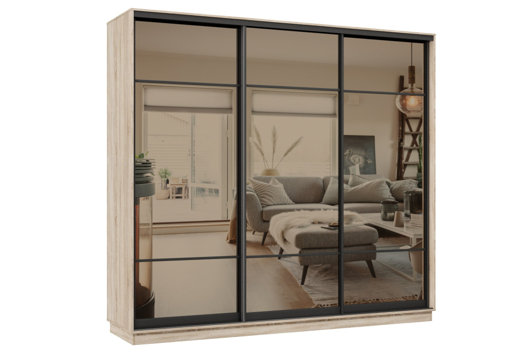 Отзывы о Столплит Шкаф-купе Премьер 36 (11ЗБ;11ЗБ;11ЗБ) фасады зеркало бронза/трёхдверный/Профиль чёрный муар Дуб сонома