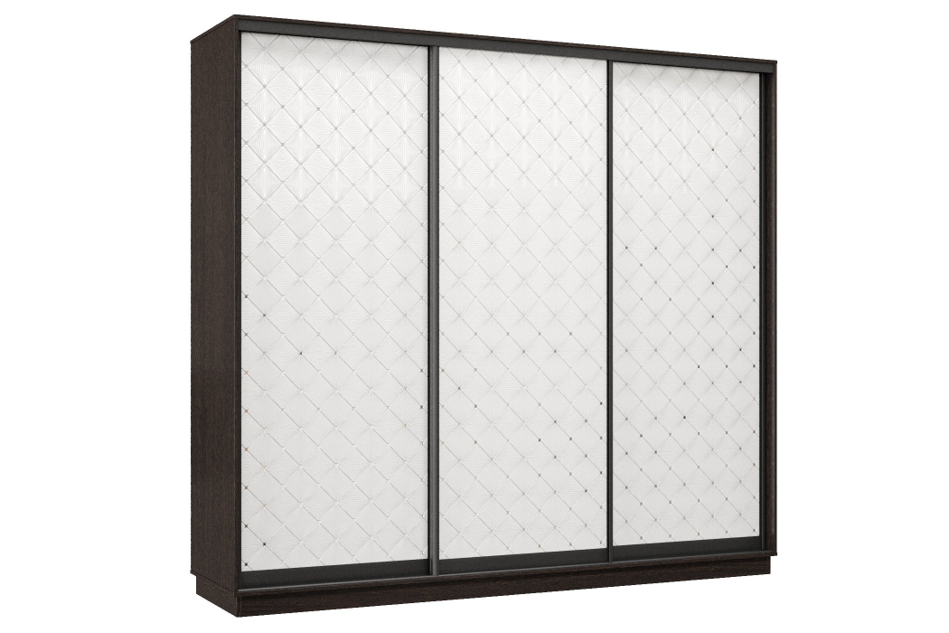 Шкаф-купе Премьер 57 (01РБ;01РБ;01РБ) фасады ромб белый/трёхдверный/Профиль чёрный муар (Венге)