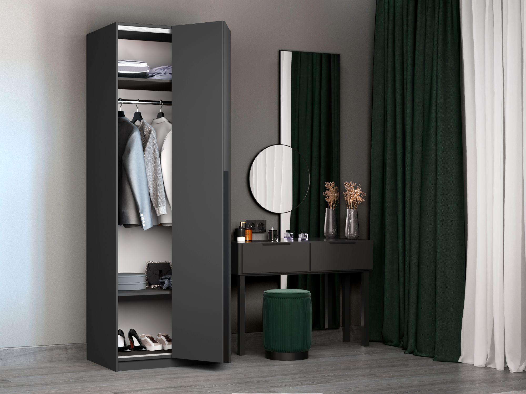 Локер — вместительный шкаф со складной системой открывания, отличающийся своим удобством в эксплуатации и легкой установкой. Благодаря надежным полкодержателям - штифтам, полки шкафа могут выдерживать до 15 кг, штанга выдерживает до 60 кг. Шкаф оснащен долговечной, ударостойкой кромкой ПВХ, которая защищает торцы от сколов и повреждений. Складная система дверей WingLine L с механизмом Push to Move позволяет открыть шкаф всего одним нажатием на фасад. Плавный и тихий ход, надежность в эксплуатации и максимальное складывание дверей – это инновационный подход к организации порядка. Данная система обеспечивает панорамный эффект и свободу в дизайне.