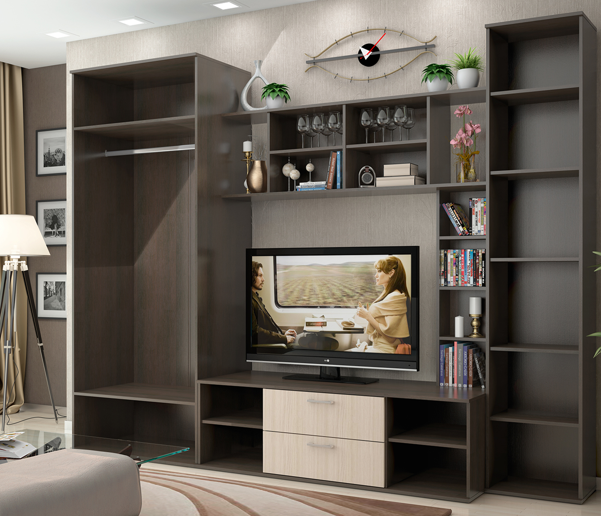 Стенка "Милан", изготовленная из качественных материалов, будет радовать вас своей красотой и функциональностью на протяжении многих лет. Классический дизайн, выполненный в мягких тонах, идеально сочетается с любым интерьером, добавляя ему благородства и элегантности.Продуманная до мельчайших деталей, стенка “Милан” включает в себя все необходимое для хранения ваших вещей. В центре композиции располагается тумба под ТВ, на которой найдется место для всей вашей техники. Боковые шкафы с распашными дверями идеально подойдут для хранения одежды, а также книг и других предметов, которые вы хотите скрыть от посторонних глаз. Завершает ансамбль полка для аксессуаров – идеальное место для размещения ваз, статуэток и других декоративных элементов.