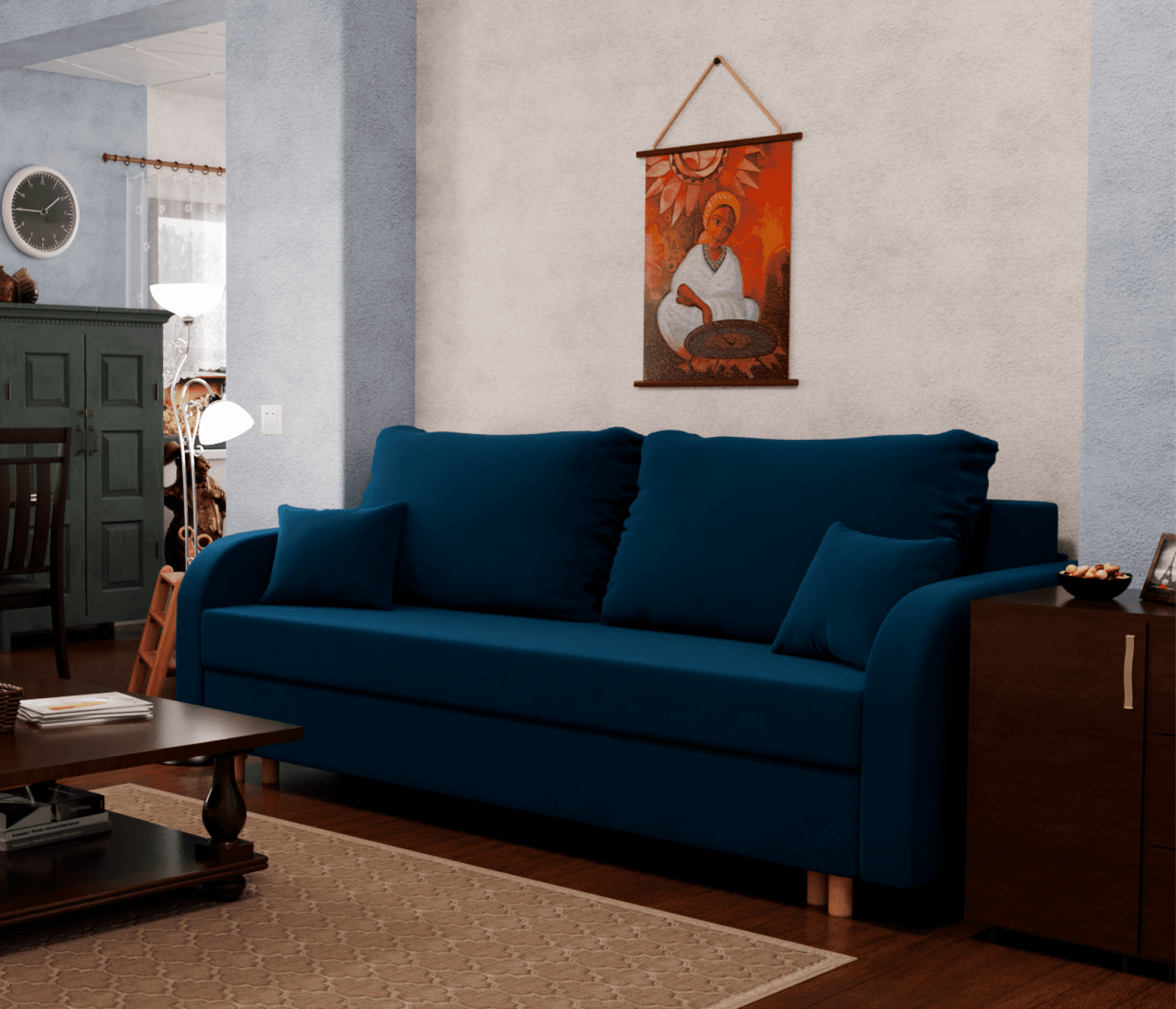 Прямой диван Оазис,еврокнижка,велюр (Синий) Код I0000386252